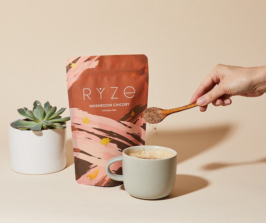 RYZE Mushroom Chicory is powered by functional mushrooms and gut-healthy superfoods. Our Caffeine-Free Mushroom Chicory features 6 adaptogenic mushrooms and herbal chicory root for a full-bodied coffee flavor. without the caffeine.